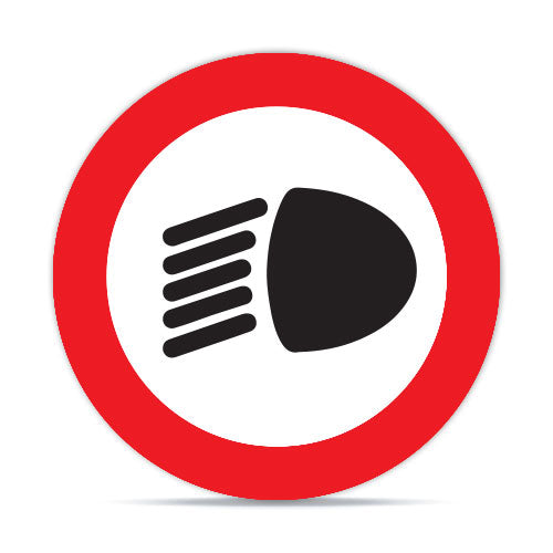 Esta señal indica que aun siendo de día, y habiendo visibilidad suficiente, los vehículos deben circular con luces bajas encendidas, a menos que cuenten con sistemas de luces diurnas (DRL).