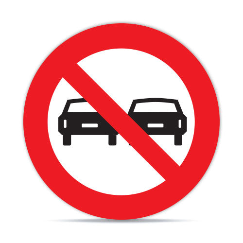 Esta señal se utiliza para indicar la prohibición de efectuar la maniobra mediante la cual un vehículo se sitúa delante de otro u otros que le anteceden, ya sea traspasando el eje de la calzada (adelantamiento), o sin traspasar dicho eje (sobrepaso). En vías pavimentadas se debe complementar con una línea continua en la calzada. Tratándose de adelantamientos, siempre se debe colocar esta señal a ambos lados de la calzada, ya que los conductores que desean efectuar dicha maniobra dirigen su visión hacia la izquierda buscando la oportunidad de realizarla.
