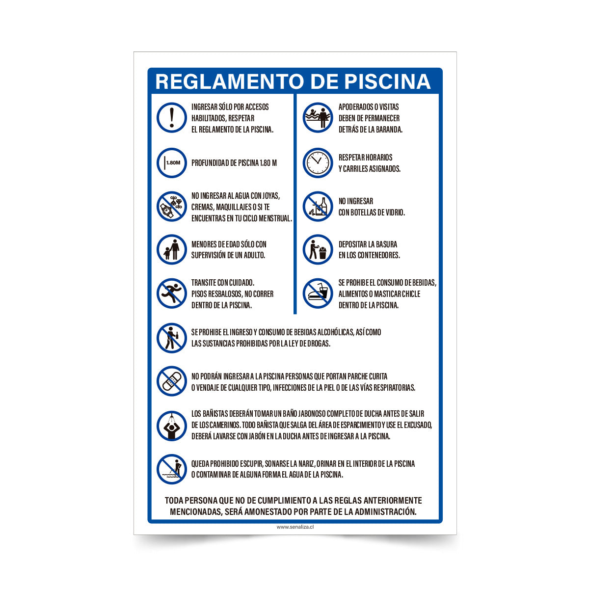Señaléticas de Seguridad en Informativas para usar en cualquier tipo de piscina de Empresas, Edificios, Escuelas y Condominios.
