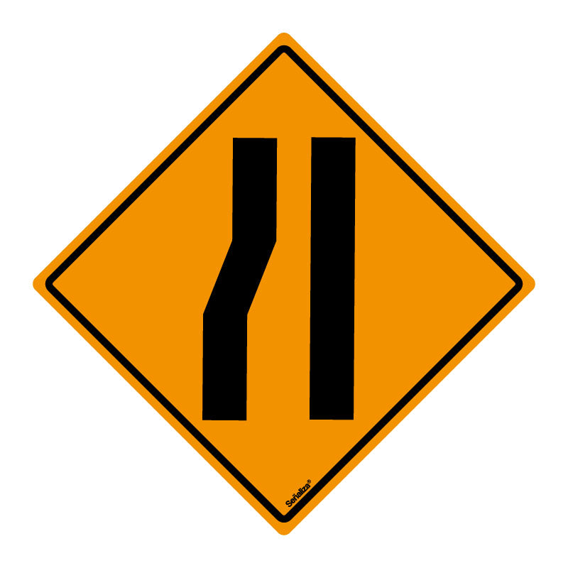 Señal Angostamiento a la Izquierda en línea económica para señalización transitoria. Ideal para obras menores y trabajos temporales. Elige material (autoadhesivo, reflectante, Trovicel o metálico) y tamaño según tu proyecto. No certificada para carreteras.