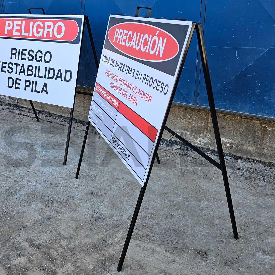 Para proyectos de gran envergadura o señalización en vía pública, el material debe estar explícitamente definido en su Plan de Señalización y Medidas de Seguridad.